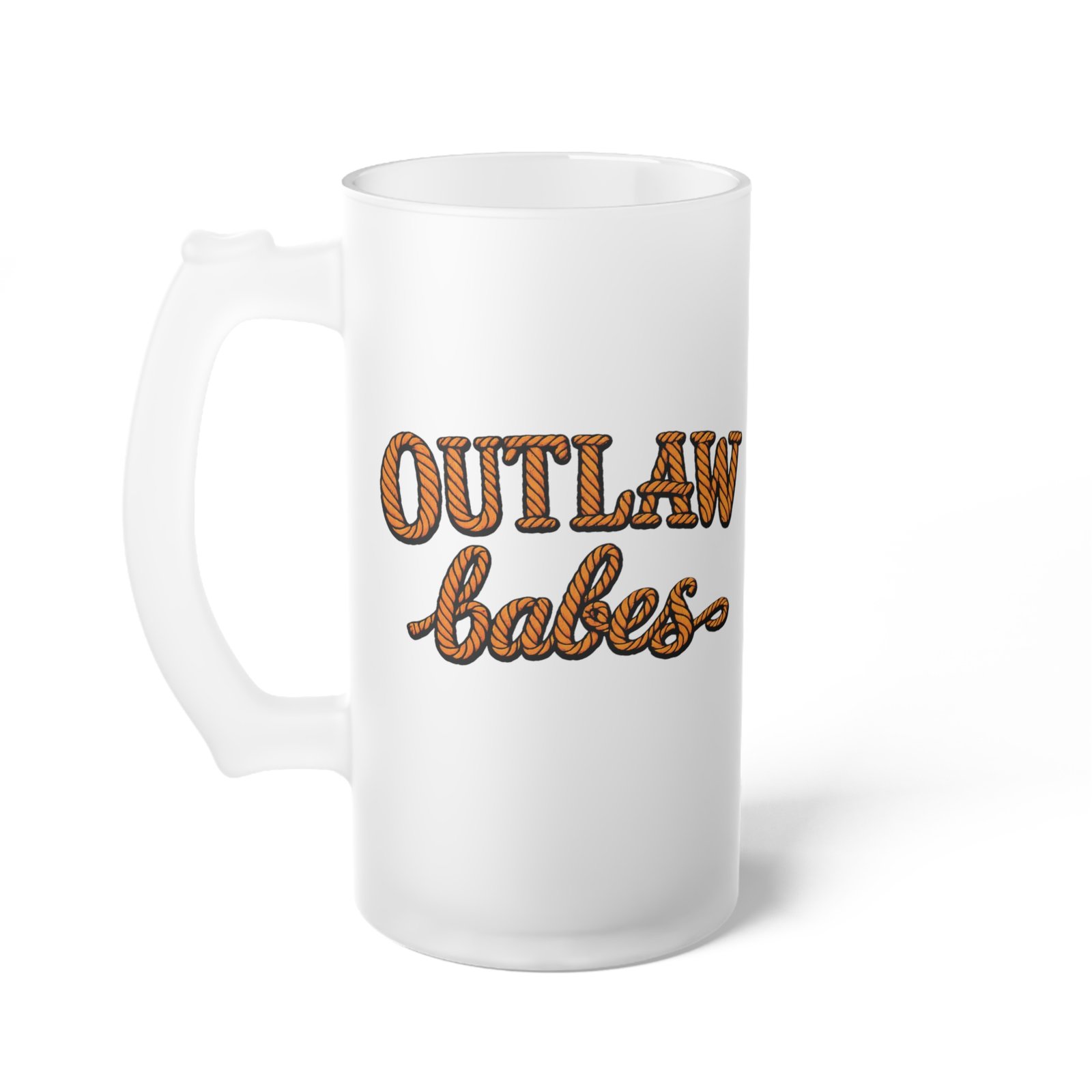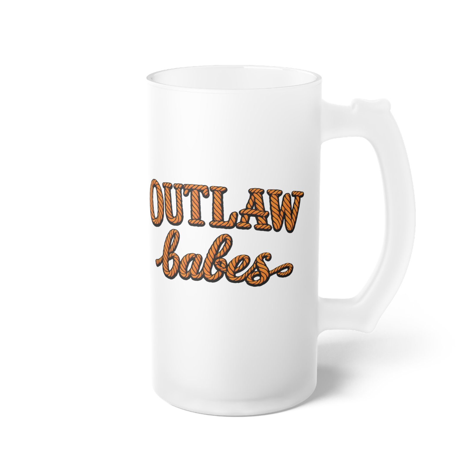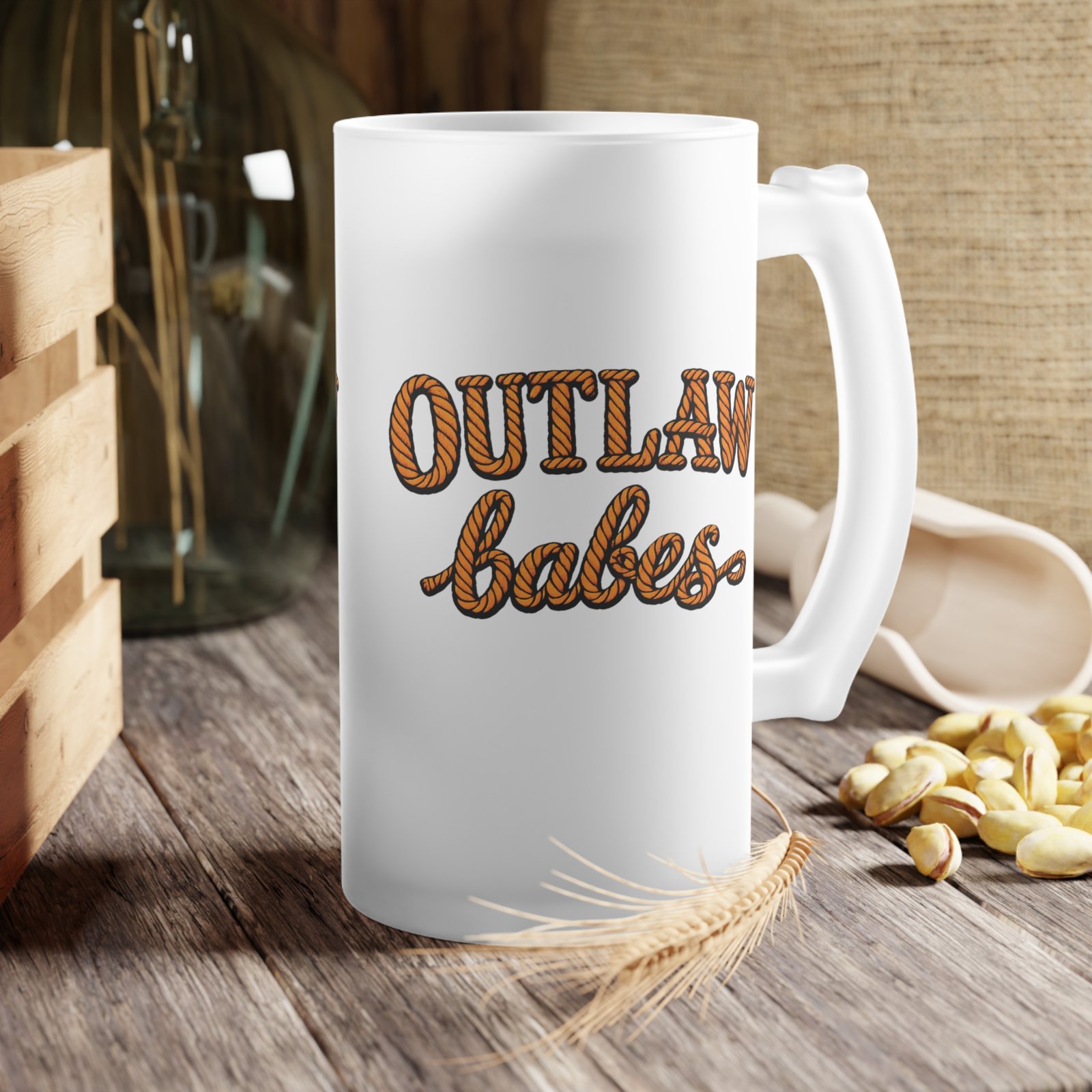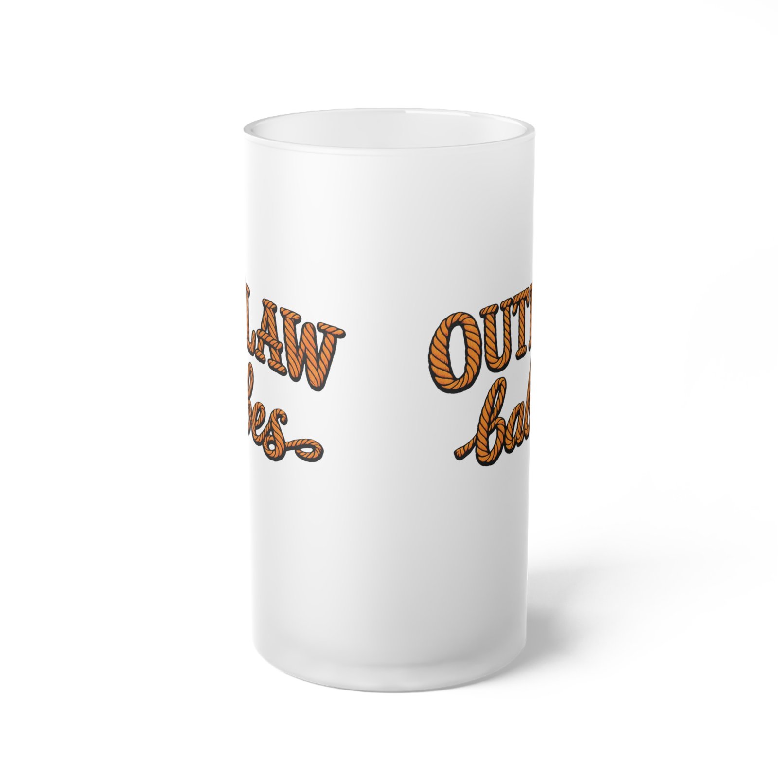 Frosted Beer Mug – “Outlaw Babes” Western Rope Typography Pint Glass.