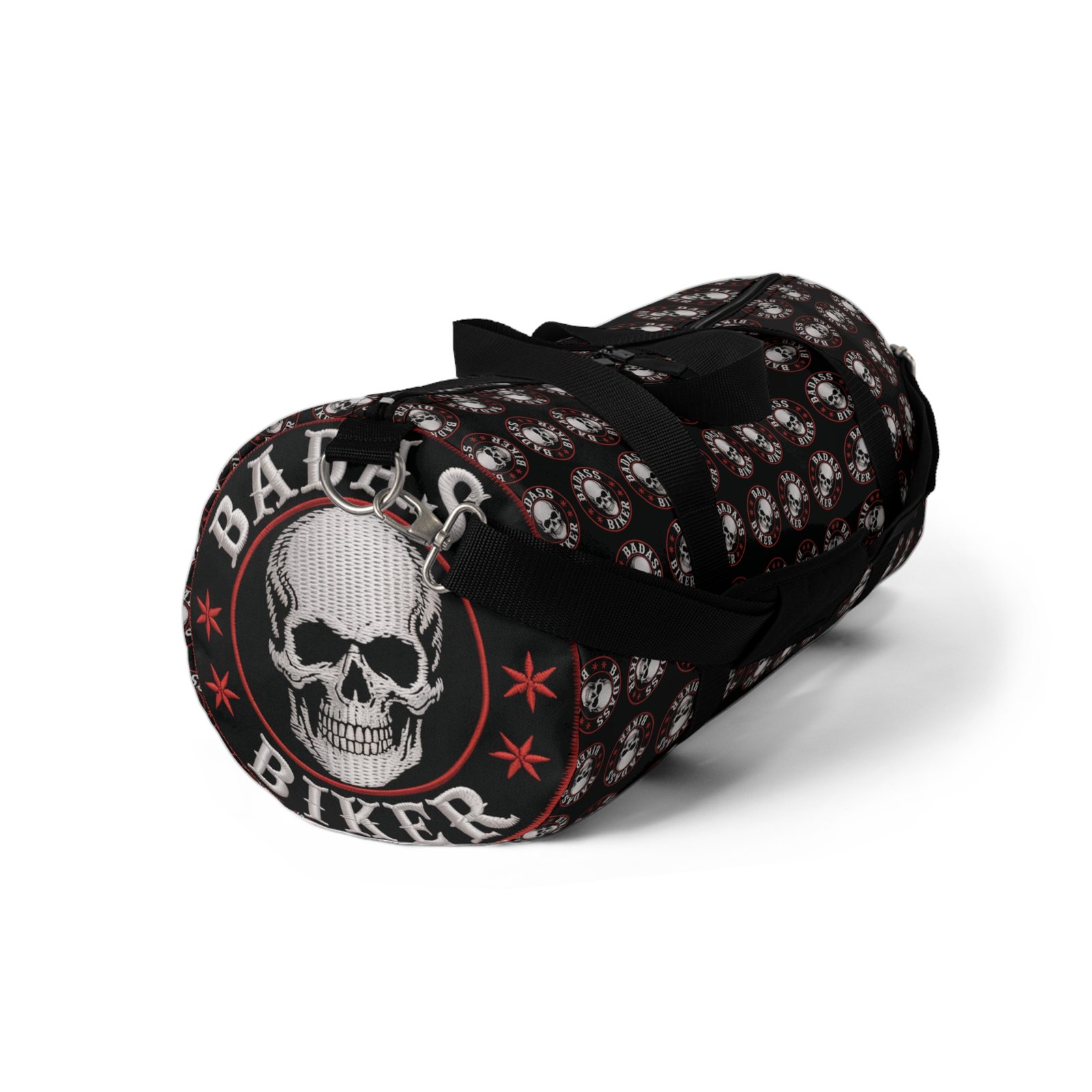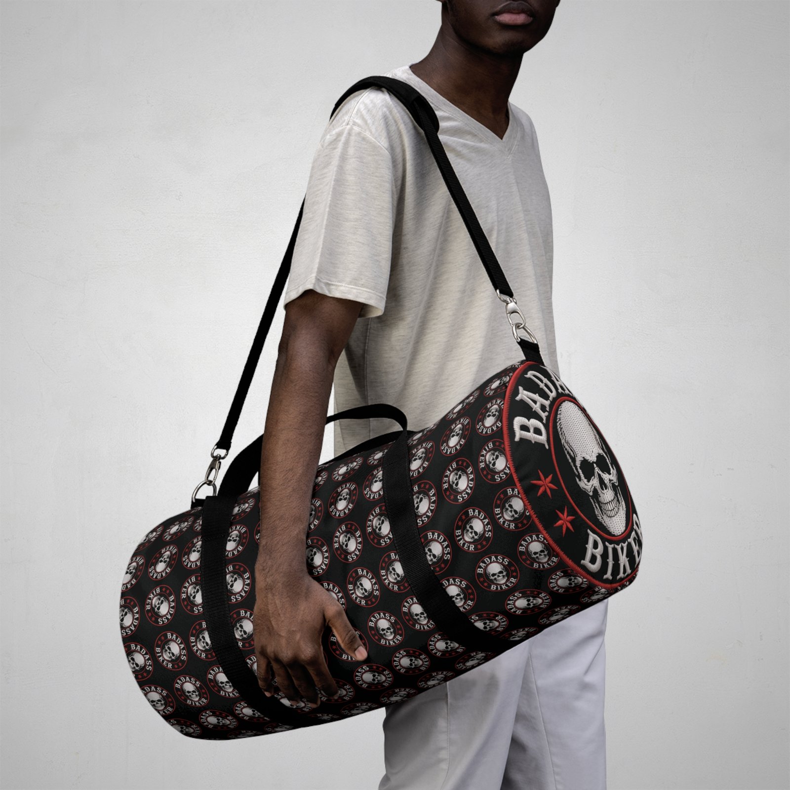 Skull Patch Duffel Bag – Badass Biker Embroidered Look – Gothic Travel & Gym Overnight Bag. Comes in two sizes.